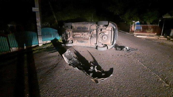 /FOTO/ Noapte de coșmar pentru un șofer din Soroca! Mașina s-a ciocnit de o bordură, s-a izbit de un gard și s-a răsturnat