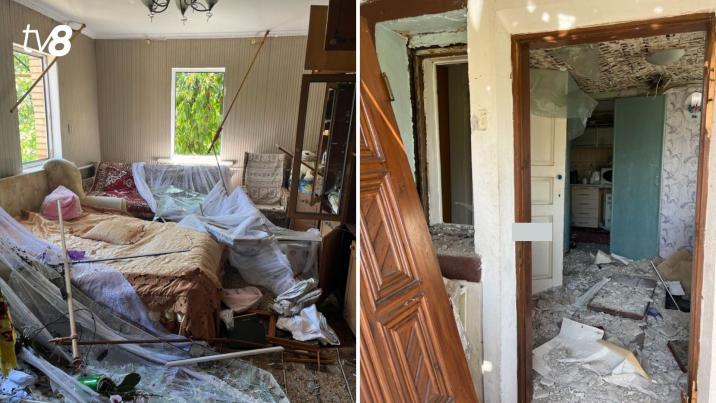 Casa era un morman de moloz. Potrivit femeii, din casă au mai rămas doar pereții și ceva mobilier. De asemenea, au fost avariate o magazie, garajul și mașina familiei.