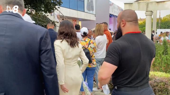 Bașcana era înconjurată de doi bodyguarzi înalți cât bradul, care au acompaniat-o până la mașină, în timp ce fugea de reprezentanții presei.