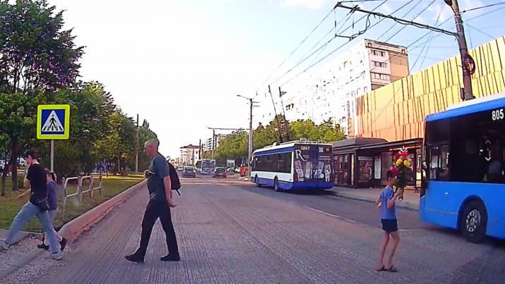 La un pas de tragedie! La aproape 3 luni de la tragedia de la Ciocana, pe aceeași stradă, unde o fată de 12 ani a fost ucisă de un troleibuz, șoferul unui autobuz a fost surprins în timp ce nu cedează trecerea unui copil.