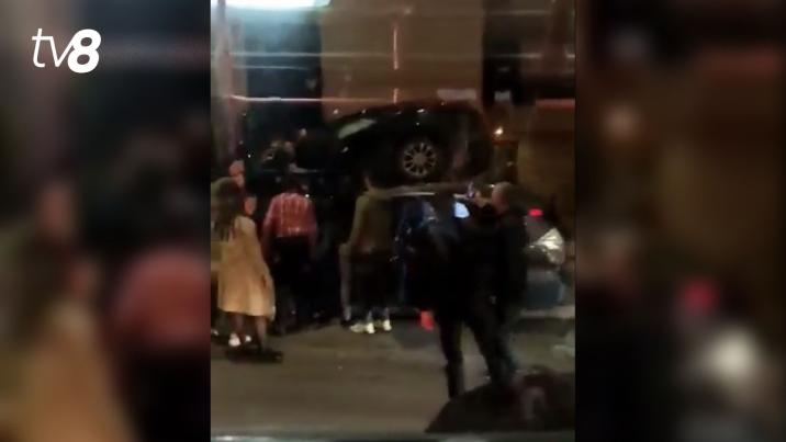 /VIDEO/ Mașină deasupra altui automobil: Accident ciudat, surprins pe o stradă din Chișinău