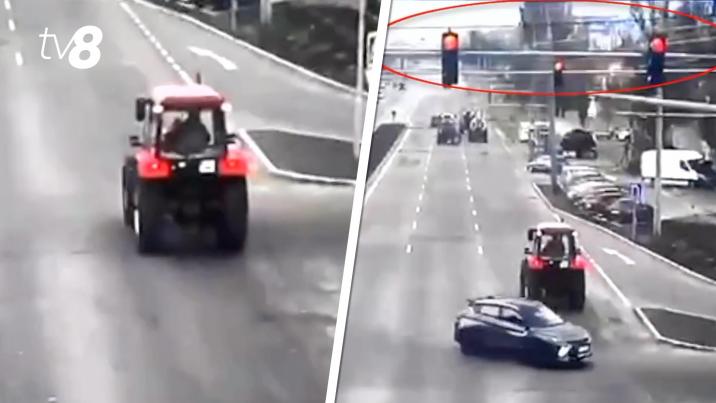 Reprezentanții Poliției susțin că în ultimele două zile, agricultorii ieșiți cu tractoarele la protest, ar fi creat mai multe situații de accident. Una dintre acestea a fost înregistrată în Capitală, când șoferul unui astfel de vehicul a fost surprins trecând la culoarea roșie a semaforului într-o intersecție.