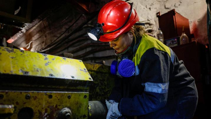 De cinci luni, Kristina, în vârstă de 22 de ani, muncește ca tehnician la 470 de metri sub pământ, deservind micile trenuri electrice care transportă lucrătorii la mai bine de patru kilometri în subteran, până la straturile de cărbune.