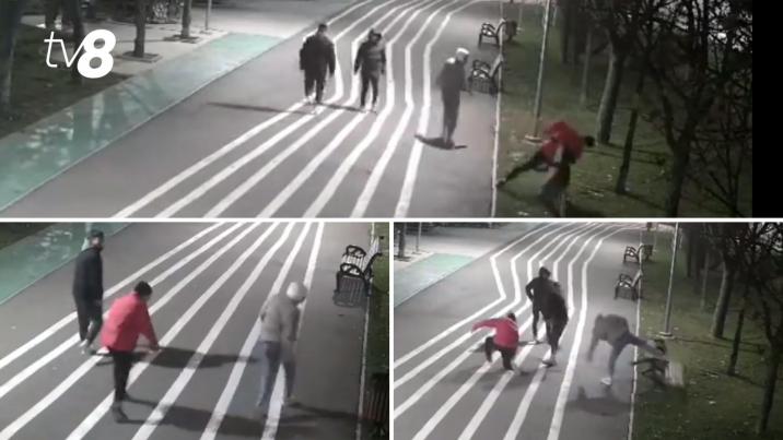 /VIDEO/ Momentul în care băncile de pe o alee din capitală sunt vandalizate. Ceban: „Orice act de huliganism trebuie pedepsit”