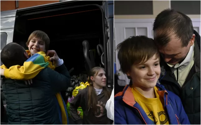 La câteva momente după ce autobuzul care îl aducea pe el și pe alți zeci de copii din teritoriul controlat de Rusia a ajuns la Kiev, un băiat de zece ani a sărit direct în brațele tatălui său.