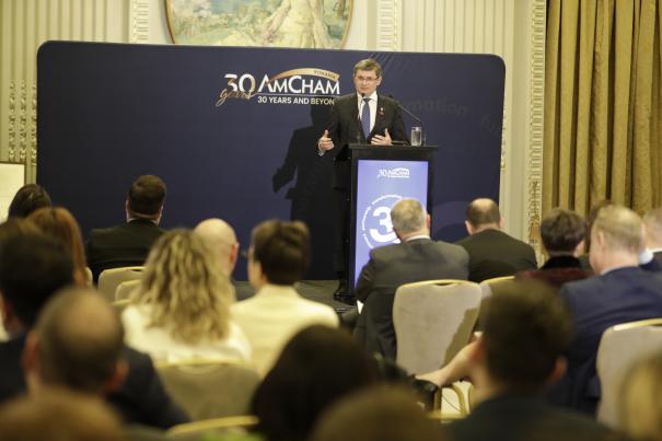 Președintele Parlamentului, Igor Grosu, i-a invitat pe oamenii de afaceri români și americani să viziteze și să investească în Republica Moldova. Mesajul a fost adresat la București, la evenimentul aniversar prilejuit de împlinirea a 30 de ani de activitate a AmCham România.