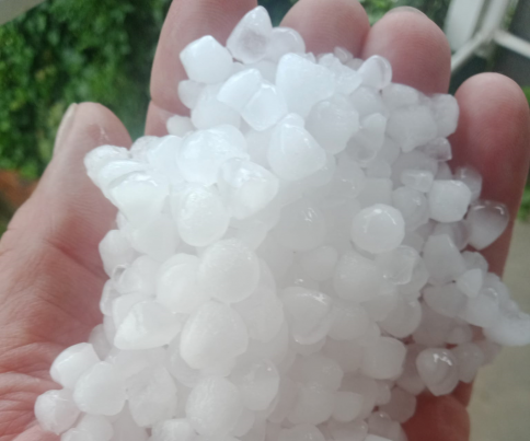 Din imaginile publicate de un internaut, se observă că grindina are mărimea unui bob de mazăre.