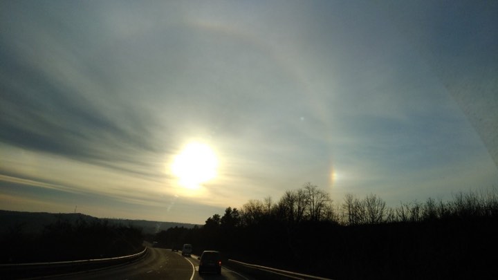 /FOTO/ Fenomen spectaculos la Hâncești. În toiul iernii, curcubeul şi-a făcut loc pe cer
