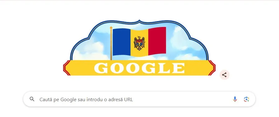 Doodle, realizat în culorile drapelului național, este disponibil pe paginile motorului de căutare doar pentru utilizatorii din Moldova.