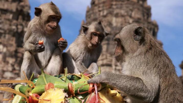 Și maimuțele au o sărbătoare a lor! Anual, în Thailanda, oamenii pregătesc un ospăț special pentru ele și le servesc masa în semn de recunoștință, pentru că atrag turiștii. Ieri, mii de mamifere s-au delectat cu fructe proaspete, legume și deserturi.