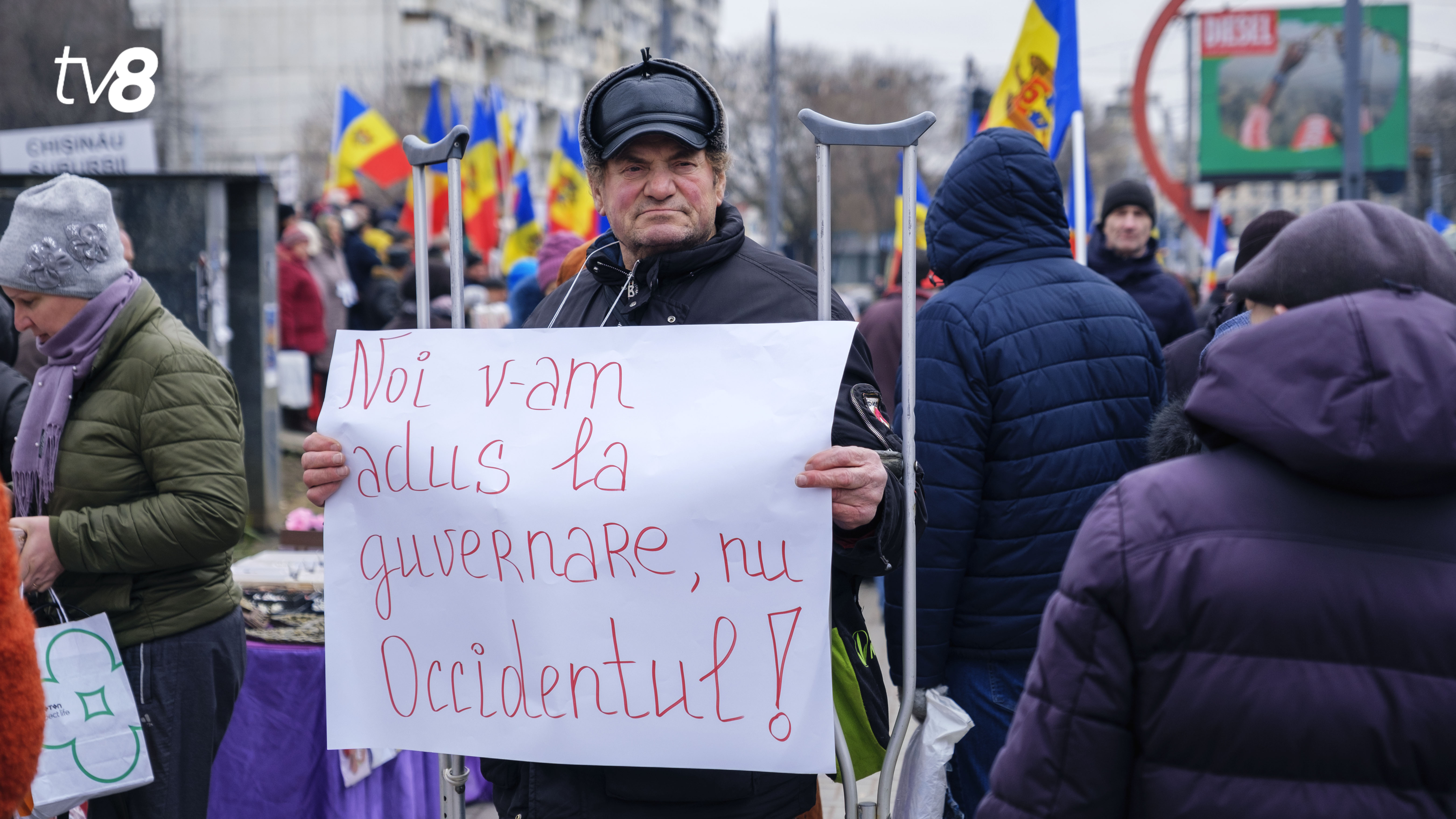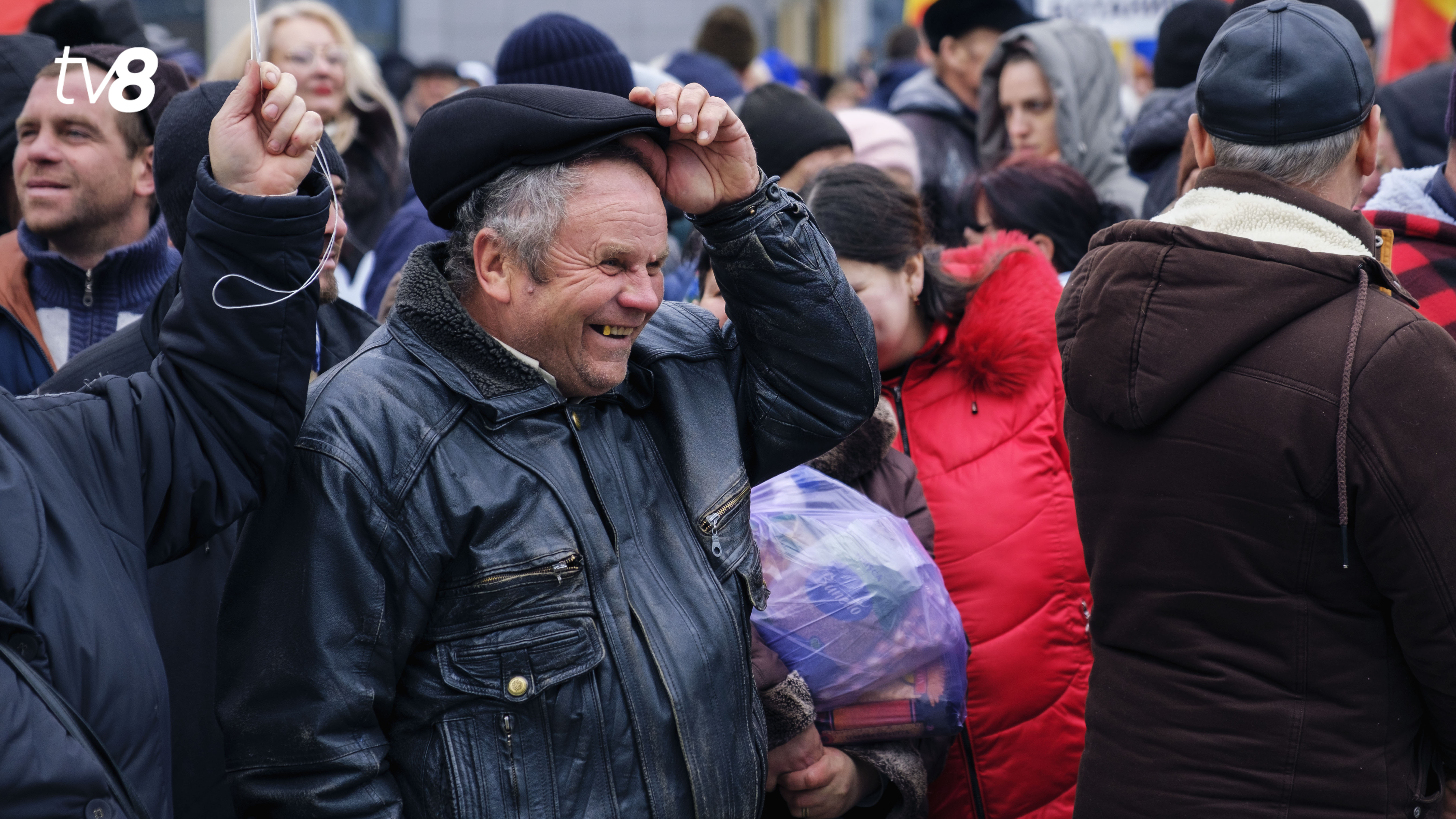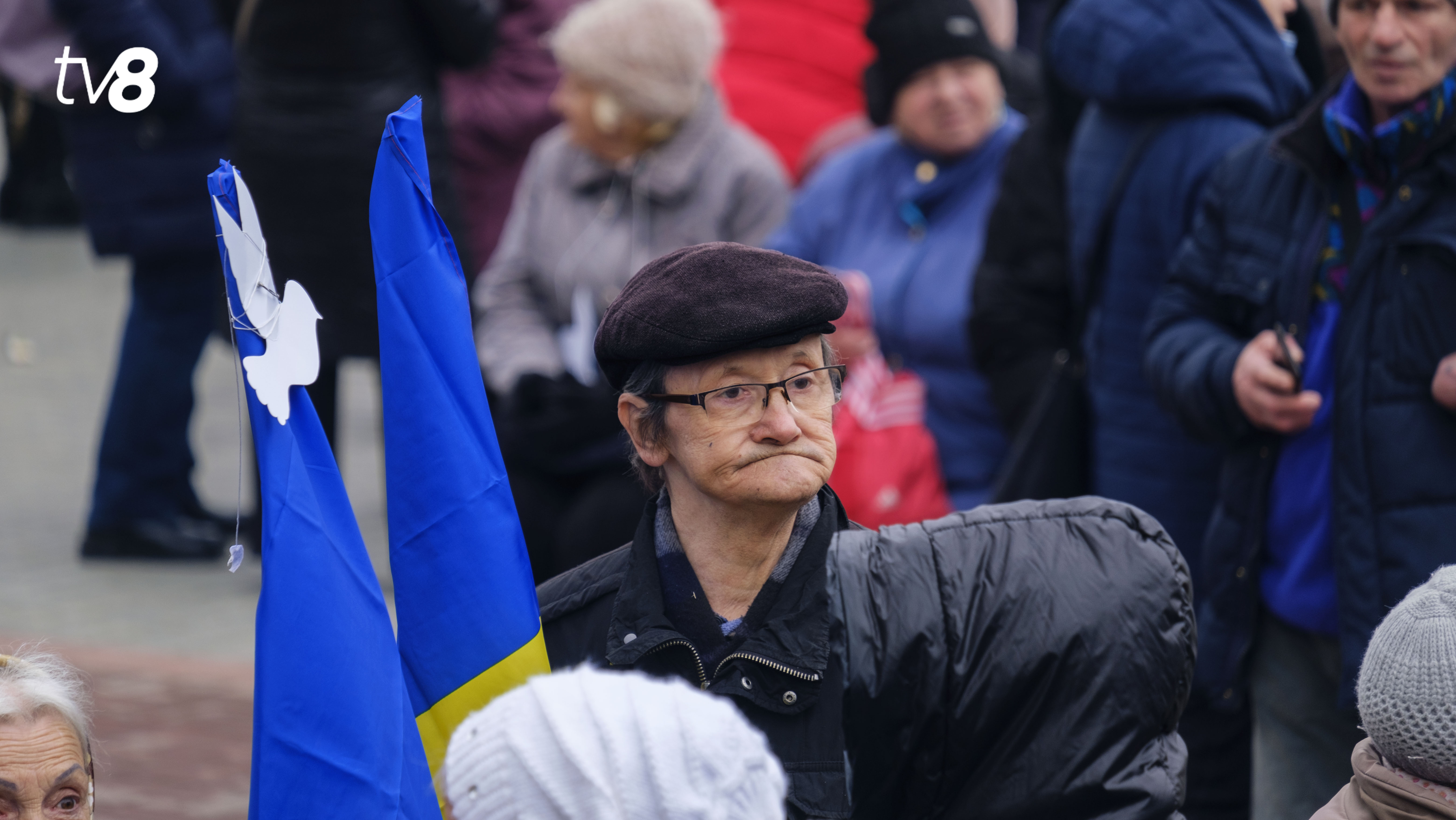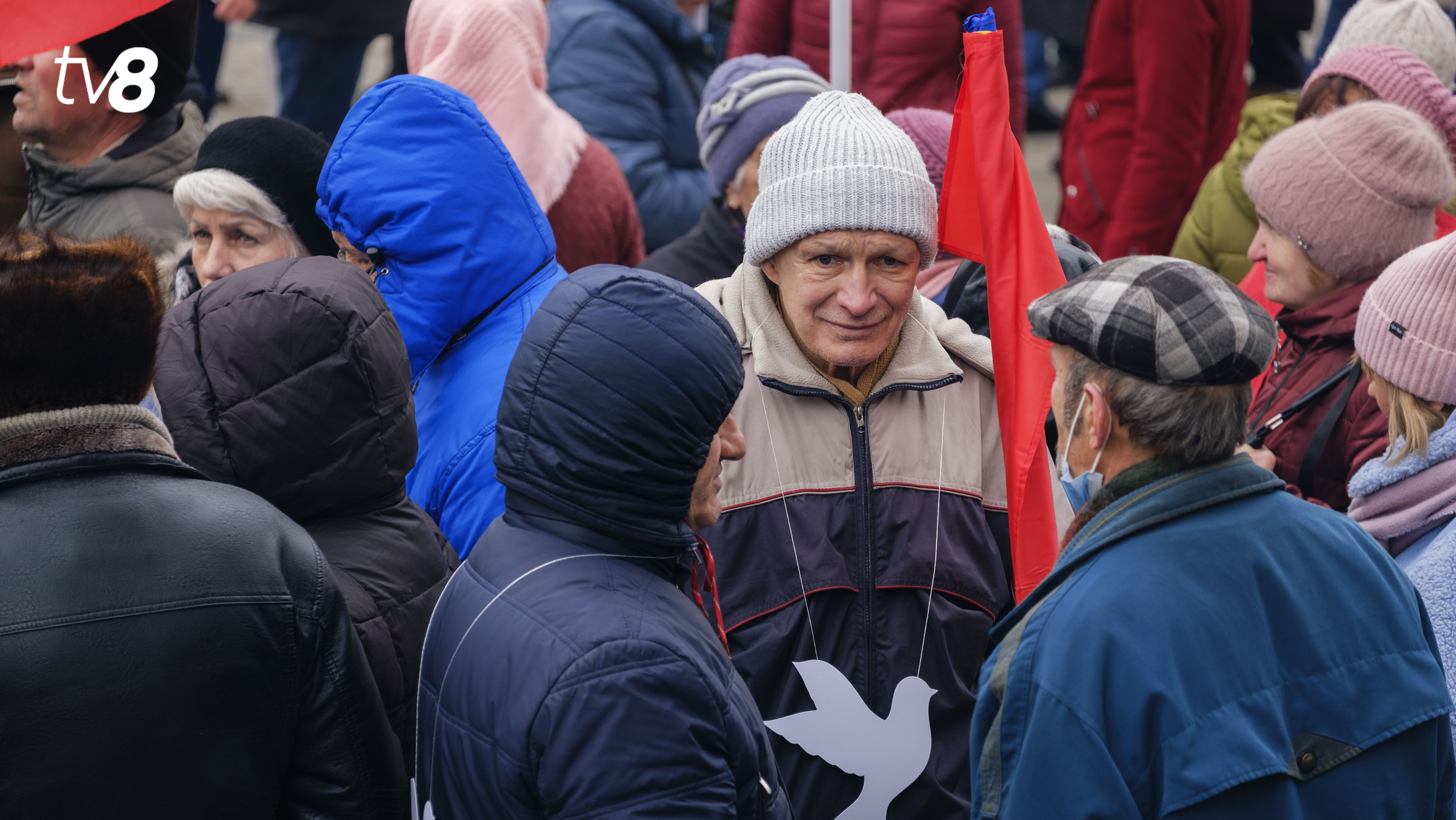 Oamenii care au reușit să ajungă la Chișinău, la protestul organizat de mișcarea pentru popor, s-au adunat, în jurul orei 12:00, în scuarul de la magazinul UNIC. Organizatorii au împărțit oamenilor porumbei confecționați din hârtie.