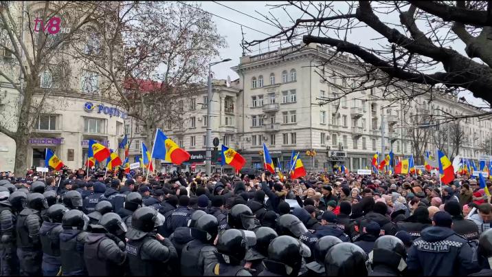 UPDATE: Mulțimea a ajuns până aproape de Primăria Chișinău. Accesul protestatarilor în PMAN este blocat de polițiști. Aceștia au format un cordon viu pentru a împiedica eventuale altercații.