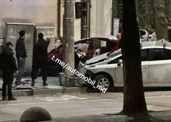 Un accident violent s-a produs în seara zilei de 17 aprilie, la intersecția străzilor Pușkin și Columna din Capitală. Este vorba de două automobile de marca Toyota, una dintre care era o mașină de taxi.
