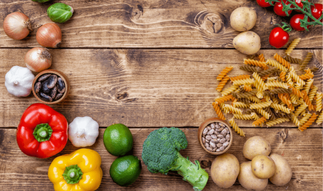 Roșii, pește, carne de pui, cereale integrale, fasole verde, alune, fistic, usturoi, ceapă verde, ceapă roșie, ghimbir, cartofi dulci, sparanghel, porumb fiert, linte sau salată verde.