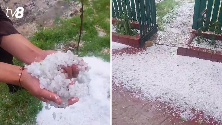Din imaginile publicate de un internaut, se vede că grindina are mărimea unui bob de mazăre.