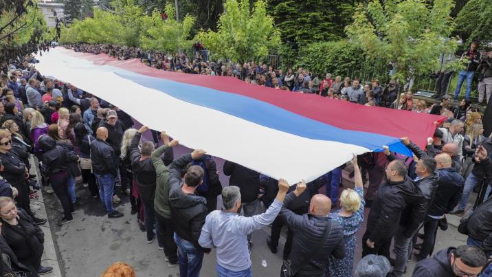 Astăzi protestele au fost pașnice. Manifestanții sârbi au cerut din nou revocarea primarului ales, de etnie albaneză și au întins un steag imens, de peste 200 de metri, din centrul orașului și până la primărie.