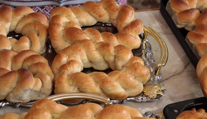 Рождественский калач- плетенная выпечка в форме незакрытой восьмерки. По традиции, первый калач кладут у иконы и хранят до праздника святого Георгия, а затем кормят им животных, чтобы они были здоровыми весь год.