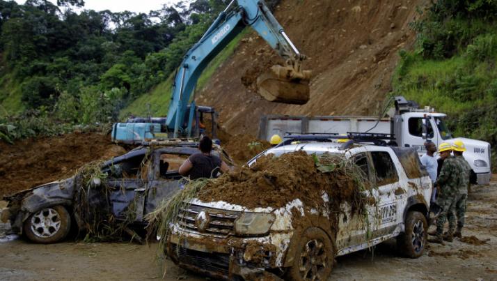Salvatori şi câini din întreaga Columbie au fost trimişi la faţa locului pentru a căuta persoane rănite, se arată în comunicat. Noroiul înghiţise complet mai multe maşini de pe şosea.