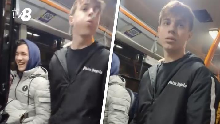 Mai mult, acesta l-a scuipat în față, în văzul celorlalți pasageri din troleibuz. Atunci când tânărul a scos telefonul pentru a filma momentele de mai jos, agresorul l-a amenințat cu violența fizică.