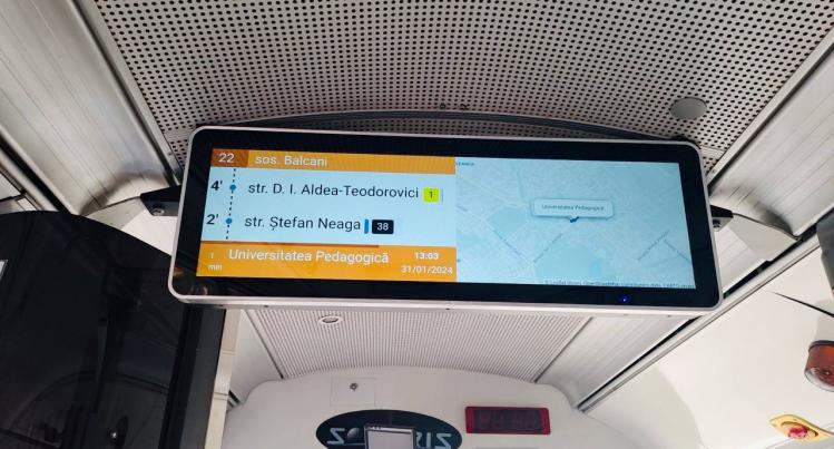 Sistemul indică și denumirea stației de așteptare cu oportunitățile de transbordare în alte rute, dar și poziționarea cu direcția deplasării în timp real pe harta digitală.