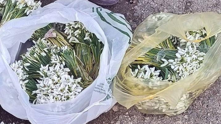 Ilegalitate cu aromă de ghiocei! Șoferul unui microbuz, plin cu flori incluse în Cartea Roșie, prins pe picior greșit