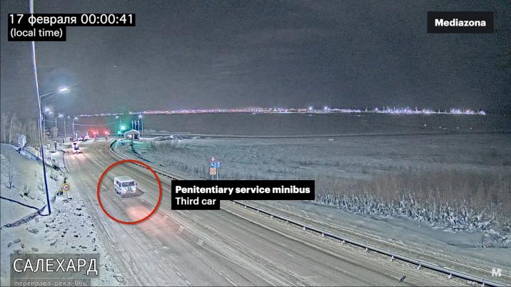 Ambele camere de luat vederi arată același convoi care traversează râul Ob la sud de Labytnangi, care este singurul drum dintre închisoarea Kharp și morga Salekhard, unde se pare că se află corpul politicianului.