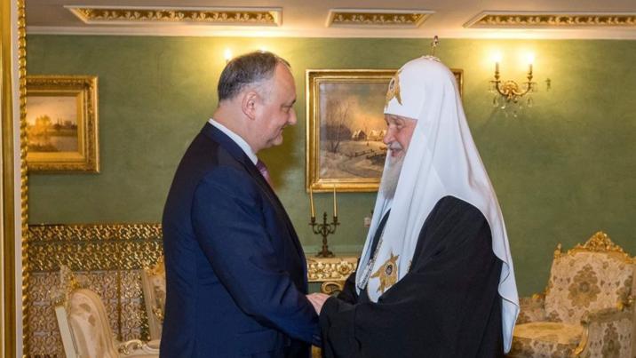 Menționăm că în 2018, Igor Dodon a fost decorat de Patriarhul Kiril al Moscovei și al Întregii Rusii. Igor Dodon s-a întâlnit cu Patriarhul Kirill în cadrul vizitei sale pe care o întreprinde zilele acestea, la Moscova. Președintele spune că a discutat repetat despre vizita Patriarhului în Moldova, dar nu a menționat când ar putea avea loc aceasta și nici motivele, de ce vizita programată pentru săptămâna trecută a fost anulată pe ultima sută de metri.