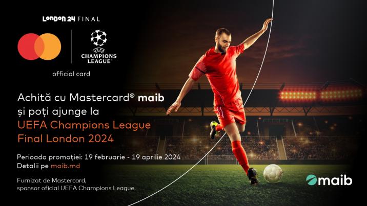 cu unul dintre cardurile tale Mastercard de la maib și obligatoriu completează formularul de înregistrare în promoție. Câștigătorul marelui premiu va fi desemnat pe data de 25 aprilie curent, prin metoda tragerii la sorți. Acesta va beneficia de o călătorie gratuită în Londra pentru două persoane, tur-retur, transfer de la aeroport către hotel și viceversa, 2 nopți de cazare, transport în ziua meciului și premii speciale de la partenerii campaniei.