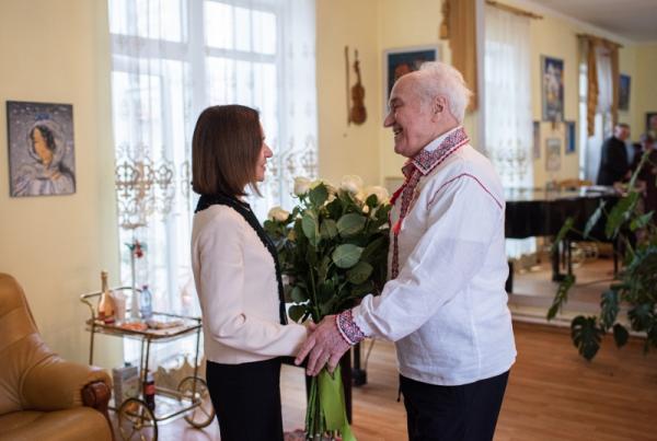 Președinta Maia Sandu l-a vizitat, astăzi, pe Maestrul Eugen Doga și l-a felicitat cu cea de-a 87-a aniversare. Șefa statului i-a mulțumit pentru creațiile sale prin care „inimile multor milioane de oameni s-au simțit mai ușoare, mai bune și mai libere să iubească”. Compozitorul a interpretat, în semn de mulțumire, o piesă la pian.