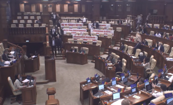 Deputații BCS au părăsit ședința Parlamentului, înainte ca aceasta să se încheie. Comuniștii și socialiștii s-au declarat nemulțumiți de votarea mai multor proiecte, inclusiv a celui privind votul pilot prin corespondență în SUA și Canada, desemnarea unui membru nou în Comisia Electorală Centrală, dar și modificarea legii cu privire la Centrul Național Anticorupție.