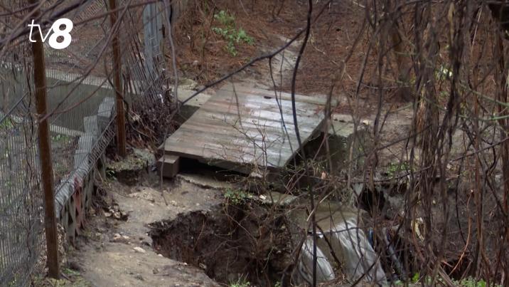 În preajma gropii, este o țeavă prin care se scurge apa de la precipitații, iar unii localnici cred că asta ar putea fi una din cauzele surpării pământului.