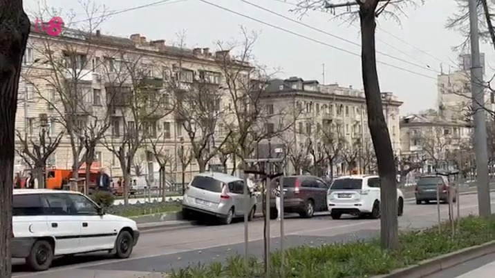/VIDEO/ Cu mașina pe gazon: Un șofer a doborât un gard de pe bulevardul Grigore Vieru și a lovit o altă mașină