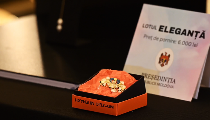 Unul dintre obiectele care au fost puse în vânzare prin licitație a fost o broșă oferită de președinta Maia Sandu. Bijuteria este de argint, placată cu aur, împodobită cu smalț și perle și a fost dăruită de Katerina Sakellaropoulou, Președinta Republicii Elene, în 2023. Prețul de pornire a fost de 6000 de lei, iar după o luptă aprigă, aceasta a fost vândută cu 20.500 de lei.