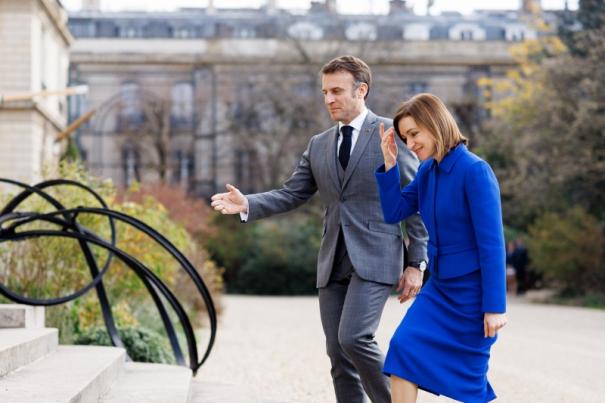 Prin această distincție, șefa statului „și-a exprimat profunda recunoștință președintelui Emmanuel Macron pentru susținerea fermă a drumului european al Moldovei, dar și al Ucrainei”.