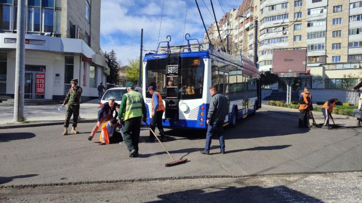 Purtătoarea de cuvânt a Regiei Transport Electric, Felicia Rusu, a declarat pentru TV8 că bărbatul purta vestă reflectorizantă și a fost tamponat exact în timp ce cupla barele.