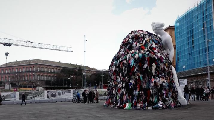 O lucrare artistică în aer liber ce o înfăţişează pe zeiţa Venus stând în picioare lângă un morman de zdrenţe a fost dezvelită în orașul italian Napoli. Se întâmplă după ce versiunea anterioară a fost incediată, anul trecut.
