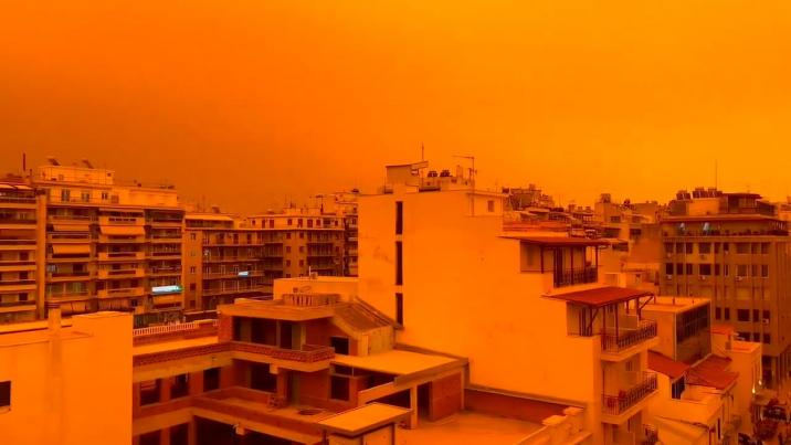 Vânturile puternice din sud au purtat praful dinspre deșertul Sahara, făcând din capitala grecească un cadru perfect pentru un film SF.