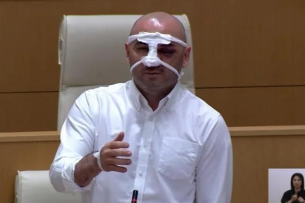 Deputatul a postat pe rețelele de socializare o fotografie cu ochiul umflat și vânătăi: „Nimic nu doare, ochiul meu va trece, corpul meu va trece și totul va dispărea”.