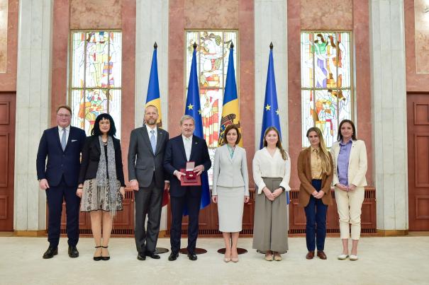 „Distincția a fost conferită în semn de recunoștință pentru contribuția semnificativă la consolidarea colaborării dintre Republica Moldova și Uniunea Europeană.