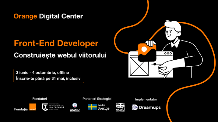 Cursul Front-End Developer este lansat de Fundația Orange și este realizat în parteneriat cu Acceleratorul de Inovații și Antreprenoriat Dreamups, sub umbrela Orange Digital Center.
