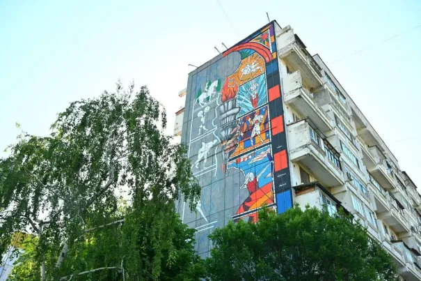 „Visul olimpic” a fost pictat pe fațada unei clădiri de la intersecția străzilor Ismail și Ștefan cel Mare.