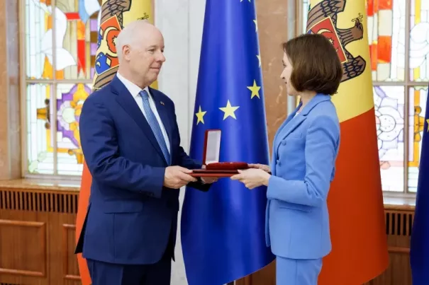 Președinta Maia Sandu i-a conferit ambasadorului Statelor Unite ale Americii (SUA), Kent Logsdon, „Ordinul de Onoare”. Șefa statului a oferit distincția în semn de înaltă apreciere pentru contribuția adusă la aprofundarea relațiilor moldo-americane.