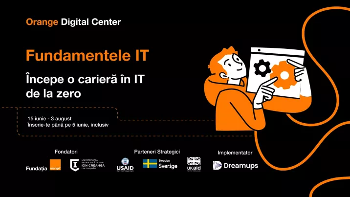 Programul de învățare Fundamentele IT este lansat de Fundația Orange și este realizat în parteneriat cu Acceleratorul de Inovații și Antreprenoriat Dreamups, sub umbrela Orange Digital Center.