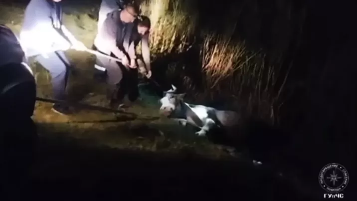 Potrivit presei din regiune, vaca a coborât la râul Sukhaya din Râbnița, dar nu a mai putut să urce înapoi pe malul abrupt. Oamenii au încercat să o tragă, dar nu au reușit să o scoată din apă și au apelat la ajutorul salvatorilor.