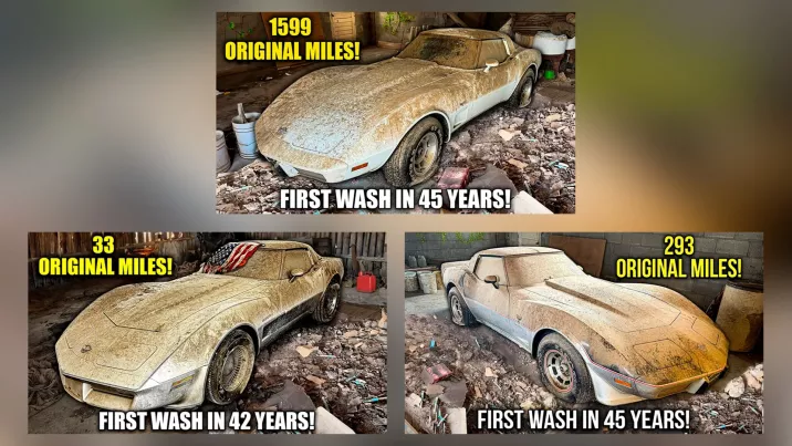 Undeva în SUA, într-un vechi garaj abandonat, a fost găsit nu unul, ci trei exemplare Chevrolet Corvette C3. Una dintre mașini, produsă în 1982, se crede a fi cu cel mai mic parcurs din toată lumea – doar 33 de mile! Autoturismul practic nou, precum celelalte, au beneficiat de o primă spălare după aproape jumătate de secol de ”odihnă”!