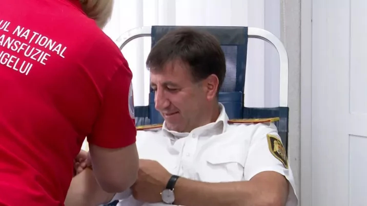 La scurt timp, pe scaunul donatorului s-a așezat și șeful Inspectoratului General al Poliției, Viorel Cernăuțeanu.