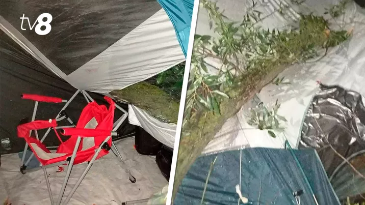 La un moment dat, o ramură mare de salcie a fost doborâtă de vânt și a căzut direct pe cortul în care se afla bărbatul de 36 de ani.