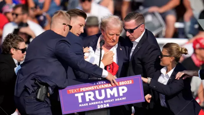 Fostul președinte și posibilul candidat la președinție din partea Partidului Republican vorbea despre problema migrației ilegale în SUA, în fața susținătorilor săi din orașul Butler, Pennsylvania. În timpul discursului s-au auzit mai multe împușcături și el și-a dus mâna dreaptă la gât. Mai multe împușcături s-au auzit în timp ce Trump părăsea în grabă scena, înconjurat de garda de corp.