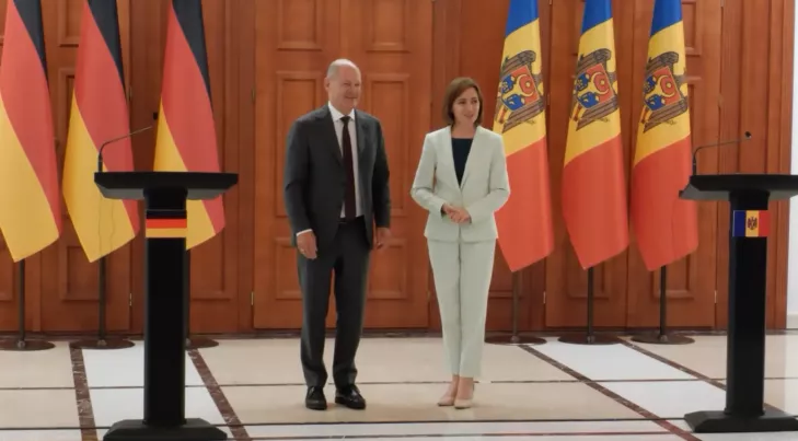 Președinta Maia Sandu a declarat într-o conferință de presă, susținută alături de cancelarul german Olaf Scholz că sprijinul oferit de Germania pentru Republica Moldova întărește Ucraina, dar și securitatea întregii regiuni. De asemenea, șefa statului a menționat că Moldova apreciază sprijinul consistent al Germaniei pentru Ucraina, măcinată de război.