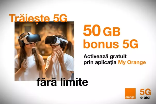 Pentru a celebra lansarea serviciilor 5G pentru abonați, Orange oferă tuturor acces la rețeaua 5G și un super cadou – 50 GB bonus 5G, care poate fi activat gratuit prin aplicația My Orange până pe 29 septembrie 2024. Bonusul generos este valabil timp de 30 de zile de la activare și poate fi utilizat în orice rețea mobilă Orange.